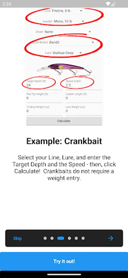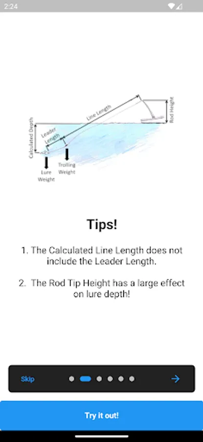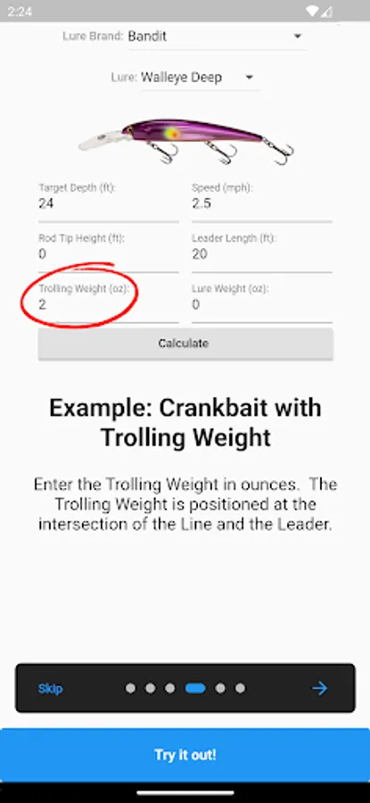 This app uses physics based calculations to determine the trolling depth of your lure with precision based on your inputs. The calculations have been verified via on the water testing.