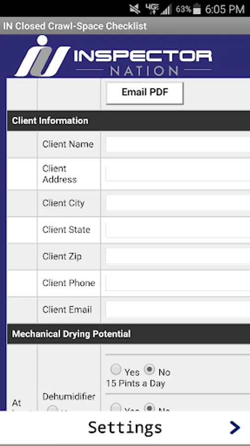 This app from Inspector Nation allows you to create a PDF from a Standard Closed Crawl-Space Checklist. The link to the PDF is emailed to you for you to view and download at your convenience.