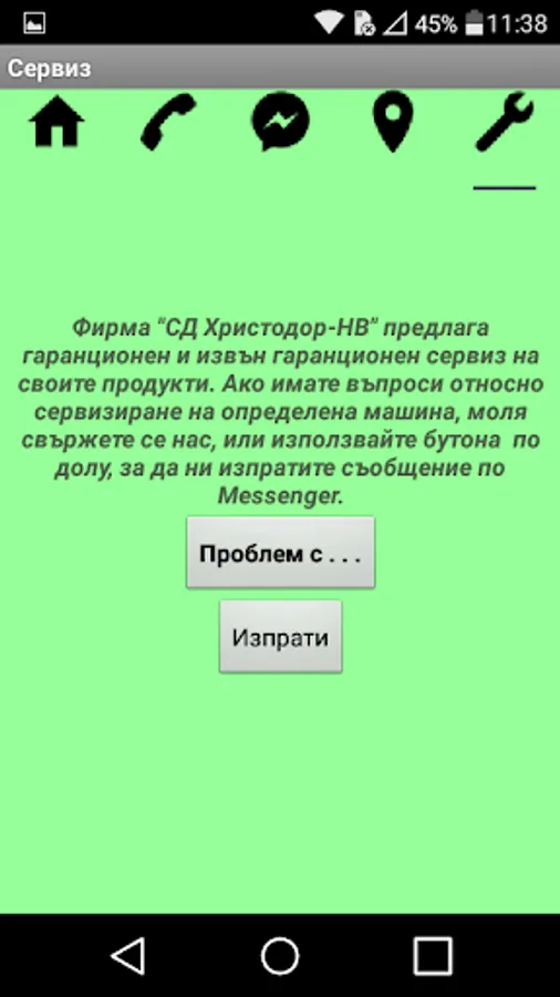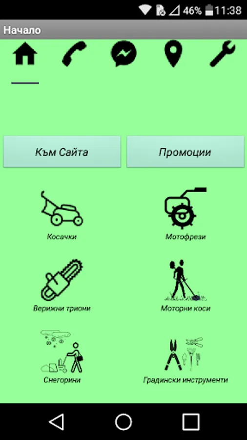 Application of company SD Hristodor-NV for Garden Technique, which allows you to contact us directly. From the app, you can choose a sitelink, a link to a promotions page, a message, or a direct call.