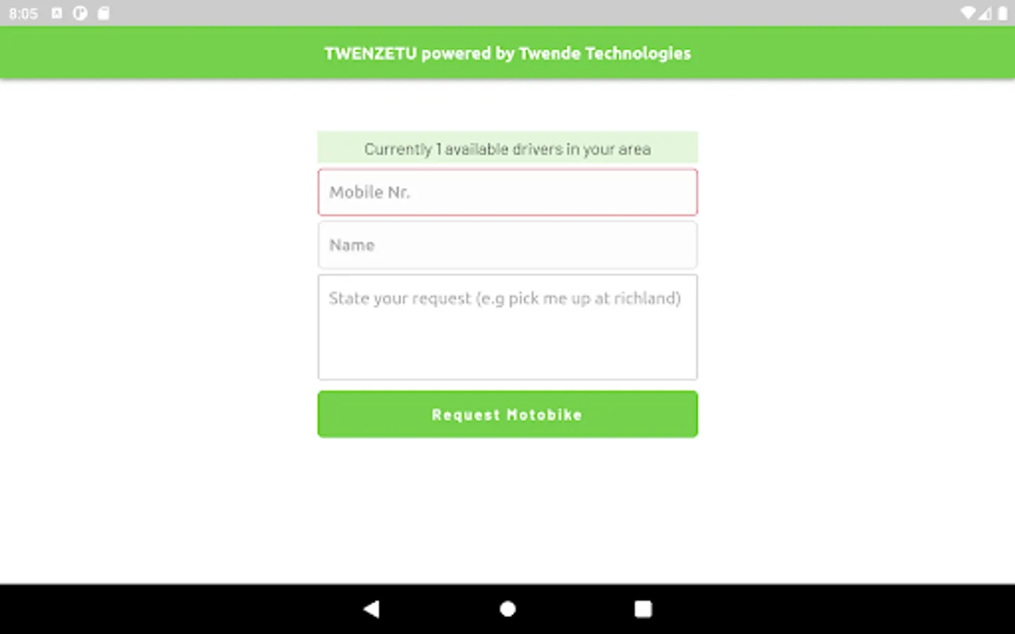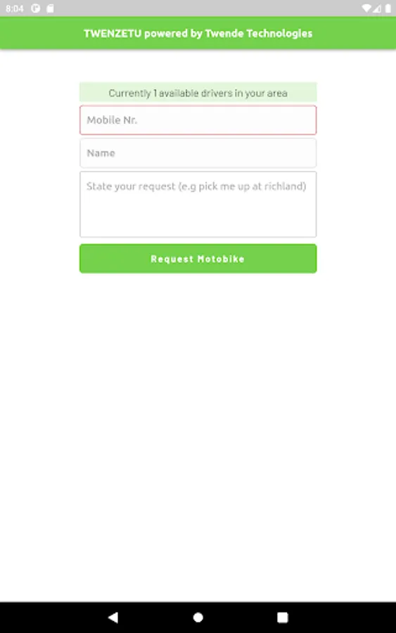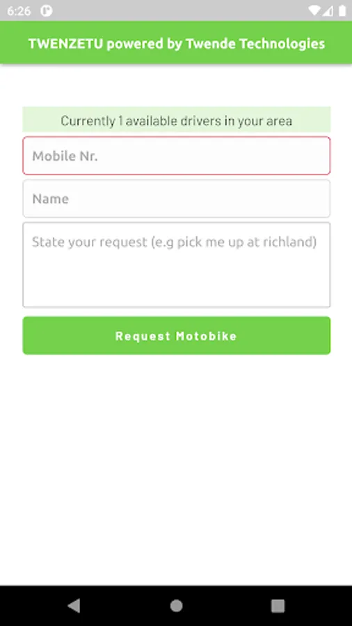 A mobile application that link customers to a trusted, registered and professional PikiPiki or TukTuk driver in your area.