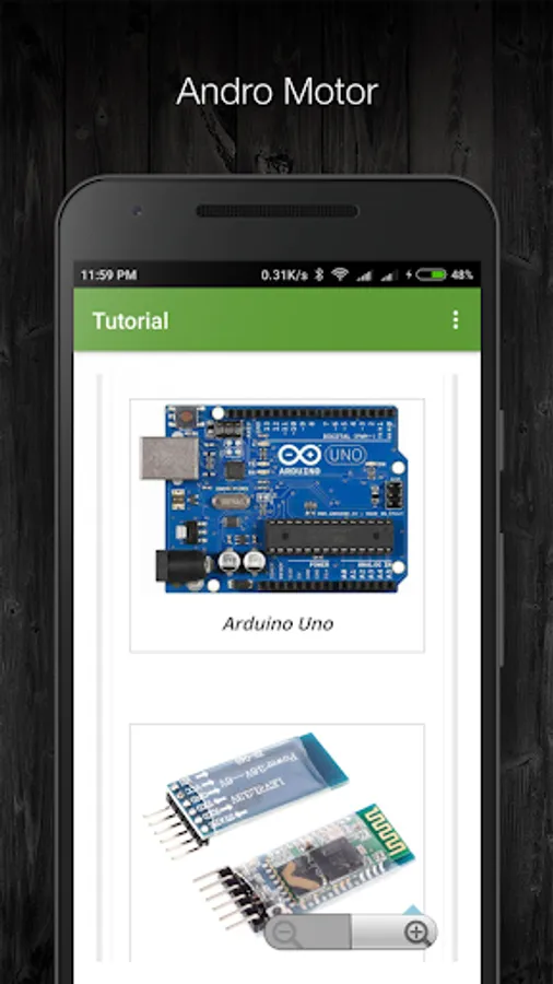In this application, there is a tutorial on how to assemble your own device (device) receiving commands from the AndroMotor application.