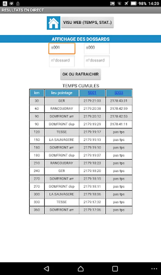 - Track time score walker (ability to record 4 bibs)
