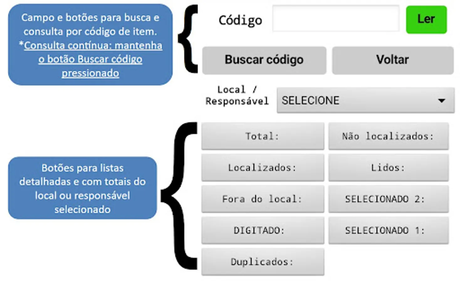 It allows the typing of numbers with unreadable barcodes, in addition to occurrences such as: damaged item, closed cabinet, private item.