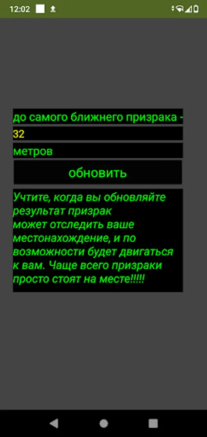 The program for finding ghosts (you can find out the distance from you to the ghost)