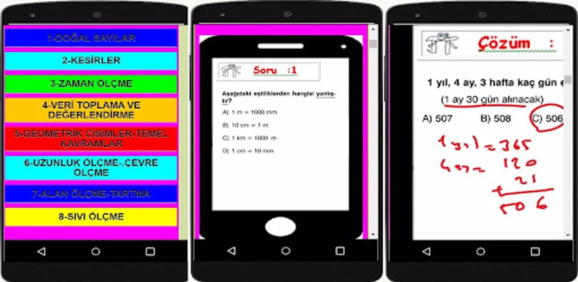 4th Grade Mathematics Natural Numbers, Addition with Natural Numbers, Subtraction with Natural Numbers, Multiplication with Natural Numbers, Division with Natural Numbers, Fractions, Operations with Fractions, Time measurement, Data Collection and evaluation, Geometric objects, Basic concepts in geometry, length measurement, perimeter Measuring, measuring area, weighing and measuring liquids will help you better understand the subject with plenty of question examples.