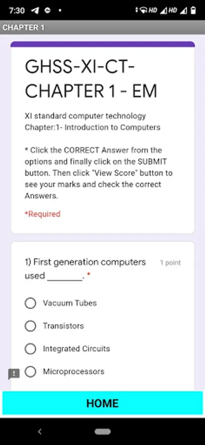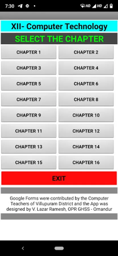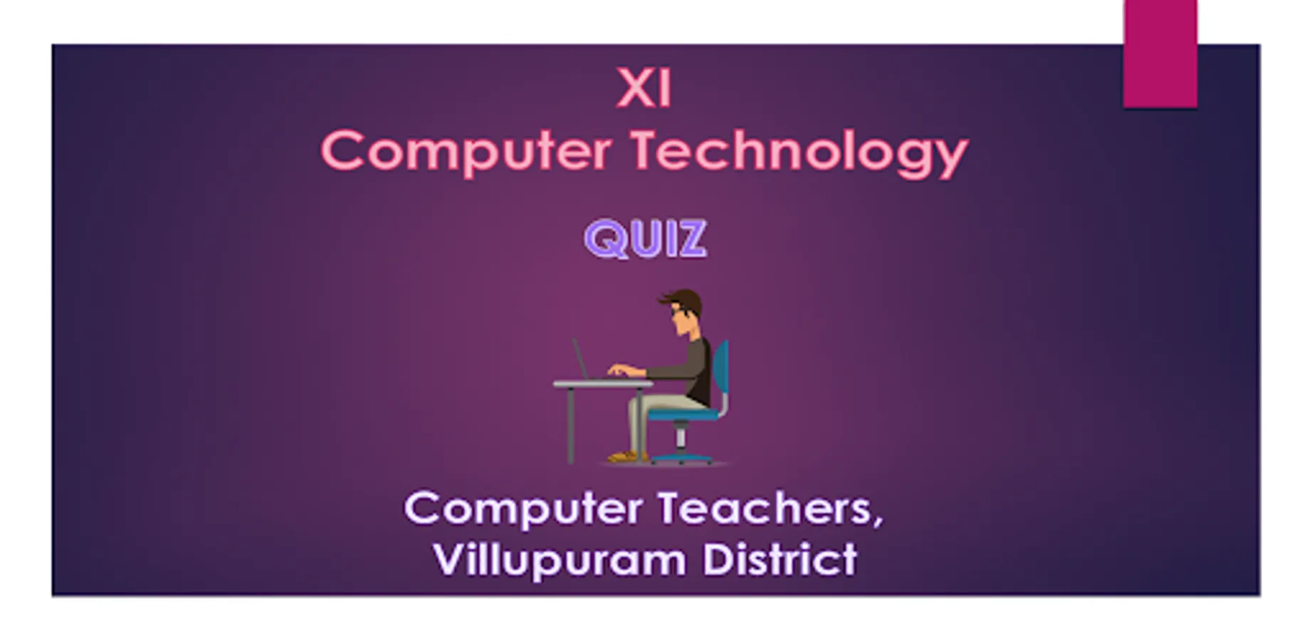 This QUIZ app contains MCQs(Multiple Choice questions) from Tamil Nadu State Board XI Computer Technology students to practice. It helps the students to score good marks in the board examinations