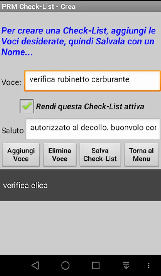 If you want you can also provide a sentence to be pronounced at the end of each Checklist.