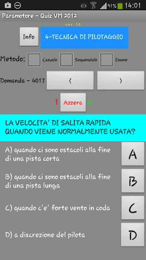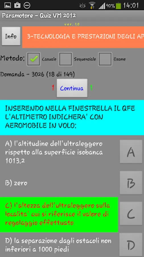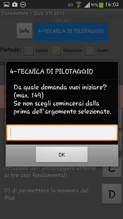- SEQUENTIAL: the 50 questions are asked in sequence from a selected topic in advance and with no time limit (allows the desired application from the selected topic);