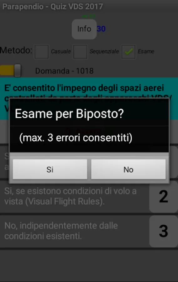 - Sequential: the 30 questions are asked in sequence from a selected subject in advance and with no time limits;