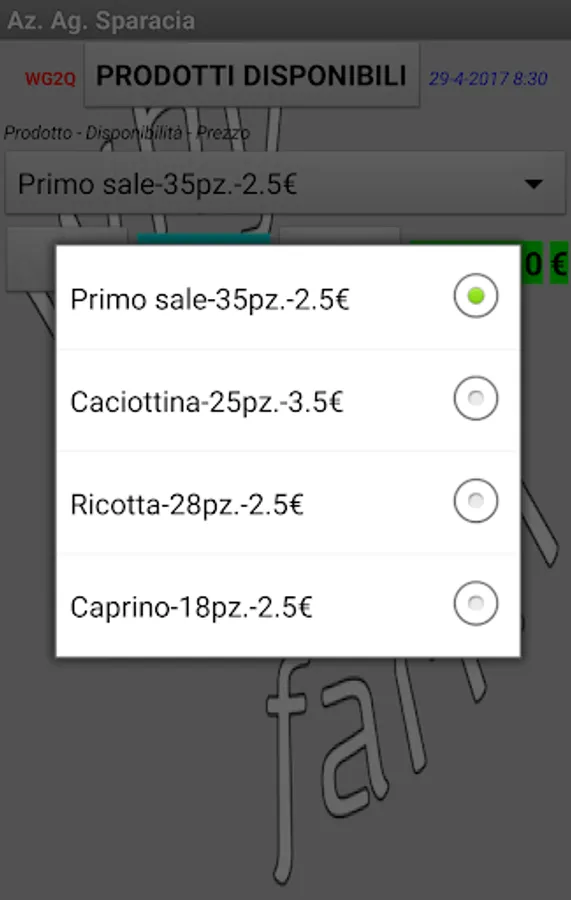 - the possible conditions of the APA are "AVAILABLE PRODUCTS" or "Cheese production in progress ...";