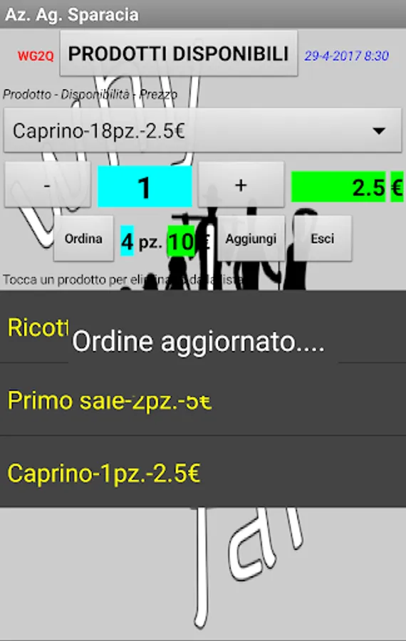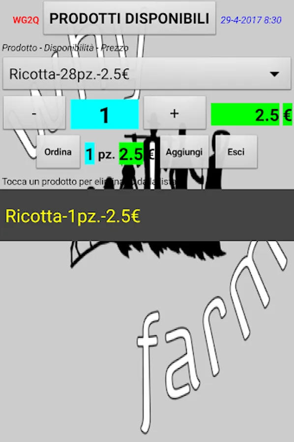 - the first run you will be given an increasingly visible in red identification code on the top left of your phone's screen to be used for the delivery of products on site;