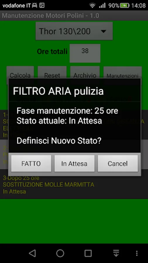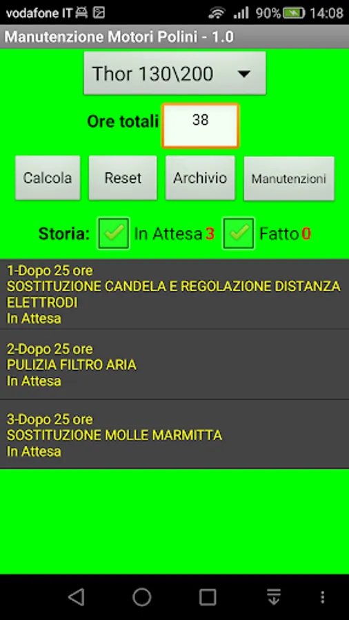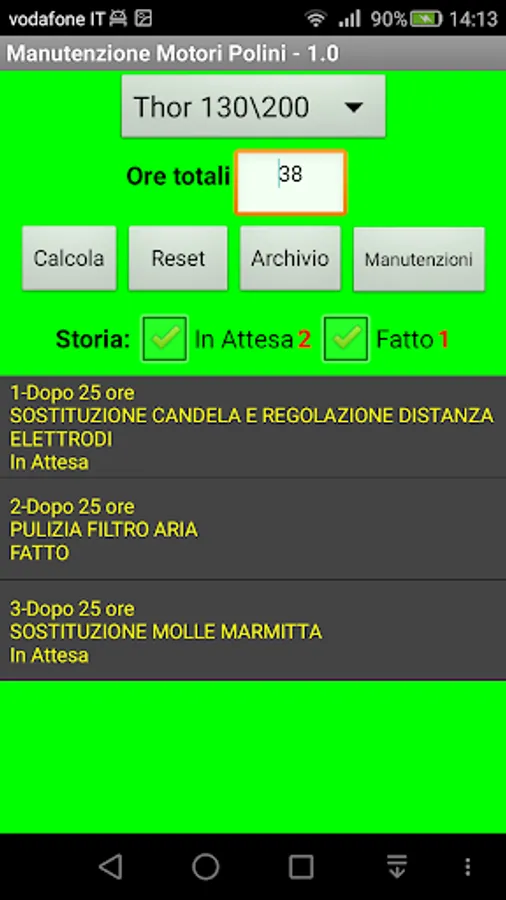 By entering the number of operating hours of its engine, the APP lists all items of maintenance, reporting deadline in hours, the description of the operation and status (Done or Waiting).