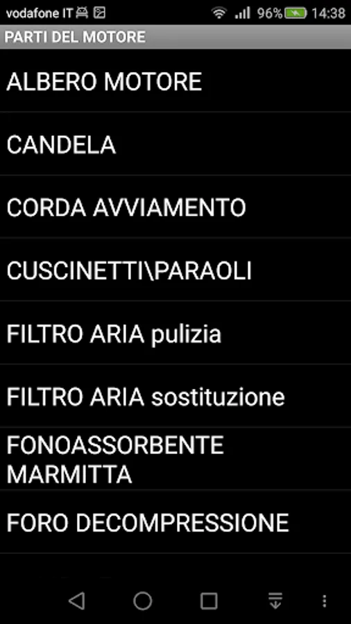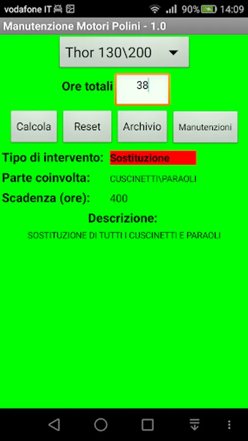 It 'also available (Maintenance button) a list of serviceable parts, sorted alphabetically, and bearing the type of intervention (control, cleaning or replacement), the party involved, the deadline in hours and the description of the intervention to be performed.
