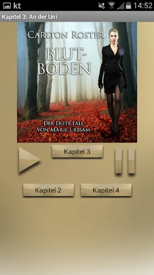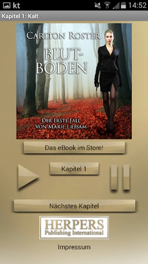 This app offers the audio book of the crime novel "Blutboden" by Carlton Roster in an elegant design. The audio player automatically leads from chapter to chapter, so that undisturbed listening is possible.