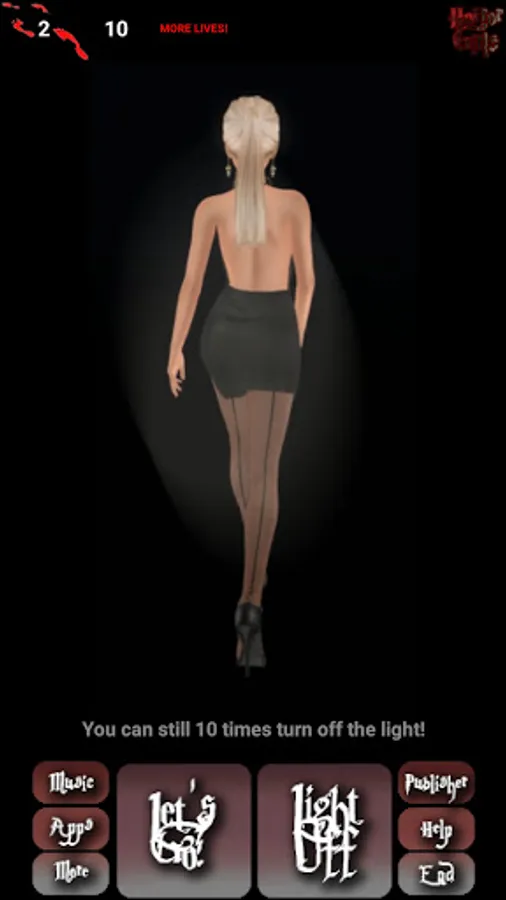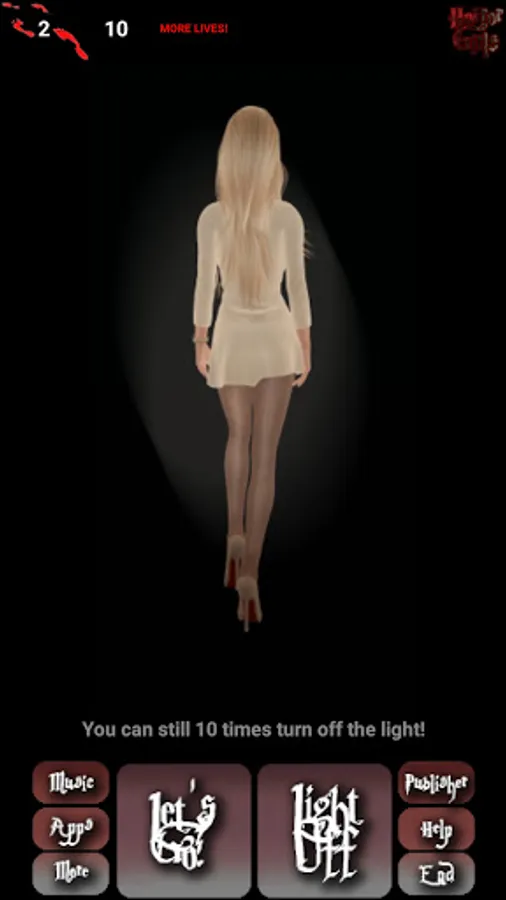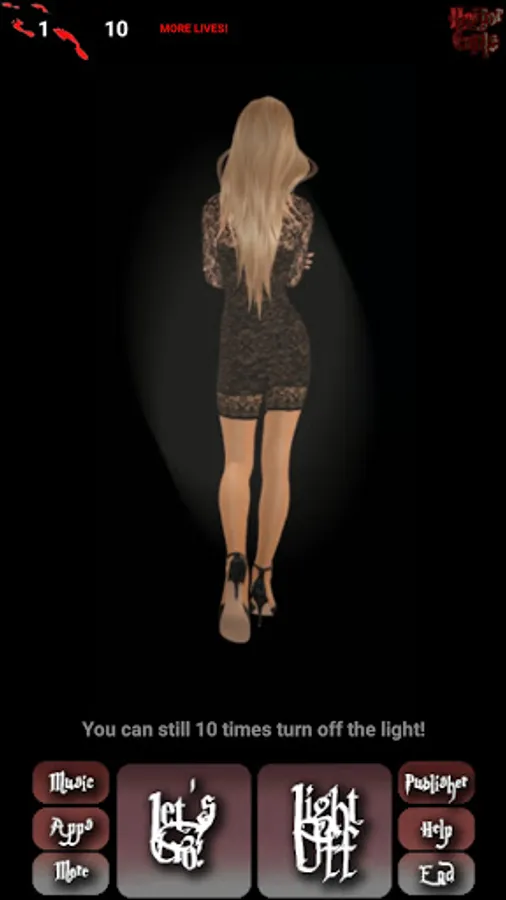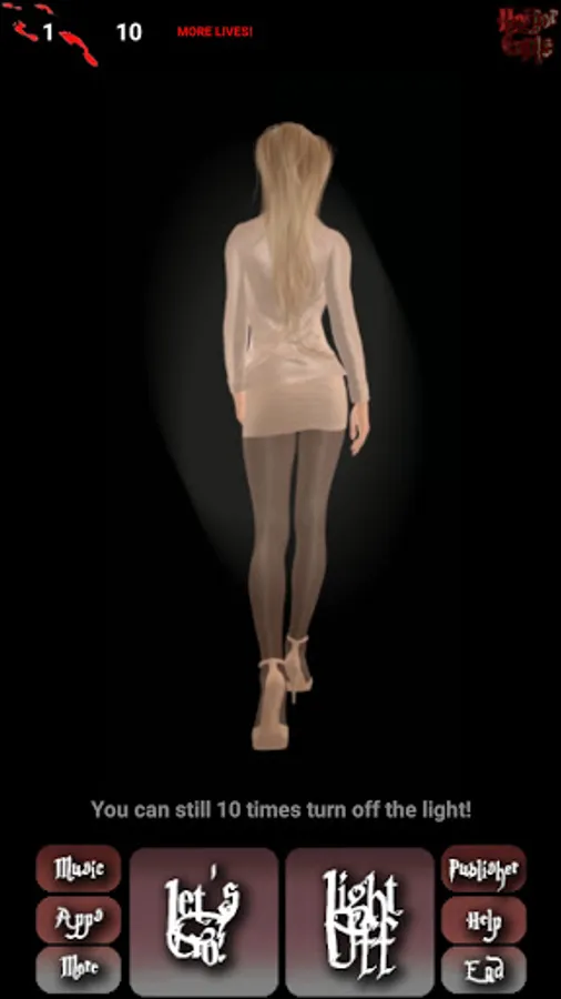 After selecting the language (German / English) and a warning for shock elements, all you can hear is the frightened whisper from Lisa: "We're scared. A group of girls has been surprised by zombies. We fled into a cellar. There is no electricity "We have no light and no cell phones. We depend on you! We're only 120 steps away from a room that is safe, that saves our lives. Only 120 steps! Light the way for us with your cell phone light! One girl after the others. Always turn off the light when you think a zombie is coming. Zombies don't see anything in the dark either. Try not to turn off the light too often! Take risks. Be brave! We need you!