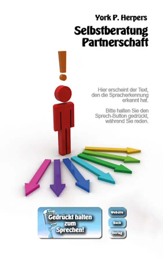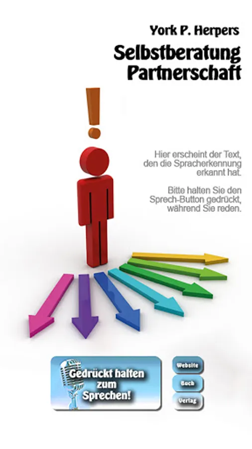 This app helps you with acute relationship problems. You speak into the microphone using speech recognition and receive keyword-related answers. A pleasant female or male voice lets you talk freely and only interrupts when you have made certain statements. The answers are based on a system that has been developed over the years and can respond to many thousands of word combinations to support you in finding your own solution.