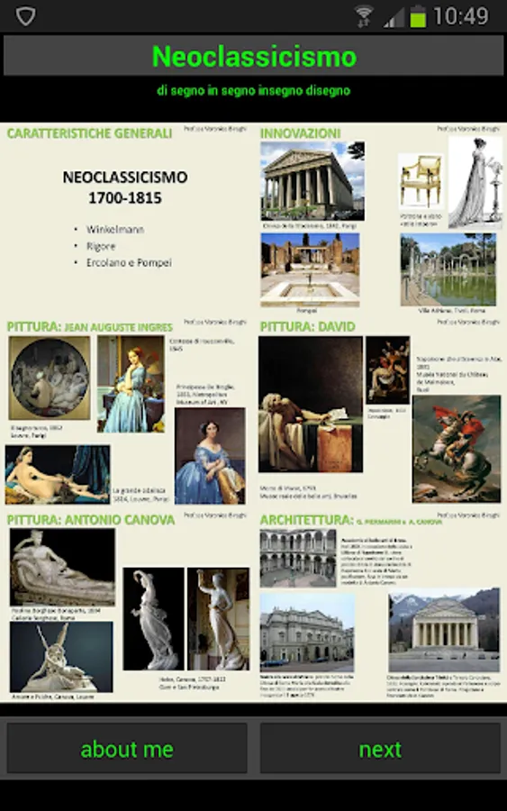 Multimedia course relating to the artistic period of Neoclassicism. Images and audio explanations relating to the main aspects and works are proposed. The realization of the course was inspired for didactic purposes for the Art and Image course at the Quintino Di Vona First Grade Secondary School, Milan.