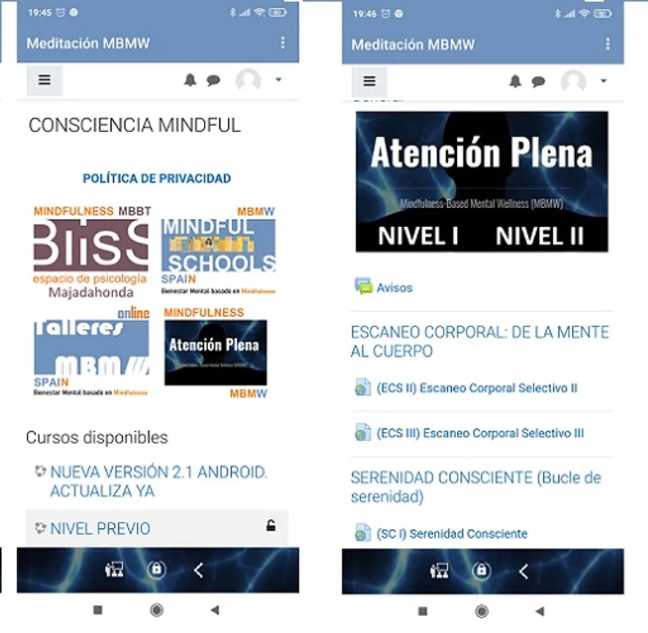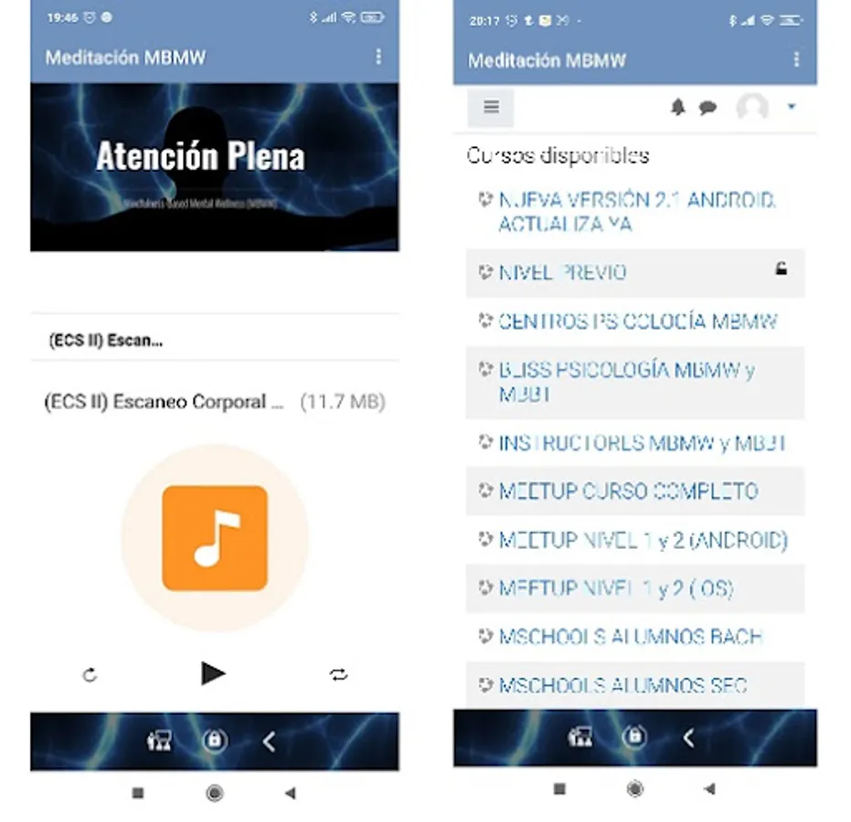 The application allows all students of the MBMW program to access the virtual classroom with guided auditions (mindfulness) of all levels.