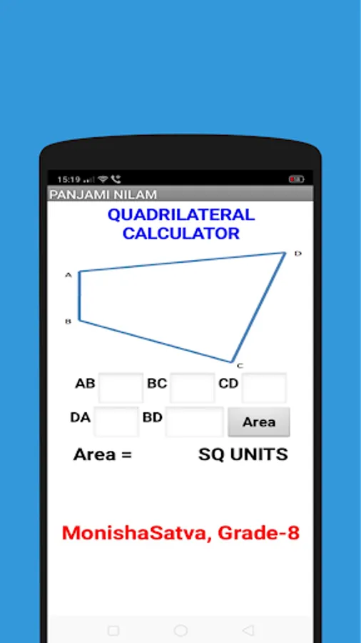This app helps to measure the area of any land if the four uneven sides and one diagonal is known..