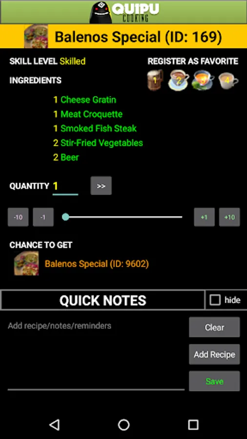 • Easier access on ingredients that also require cooking (chain recipes, e.g. Dark Pudding requires Oatmeal which requires cooking too)