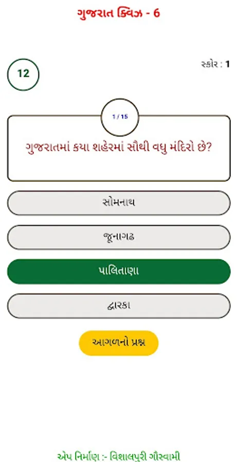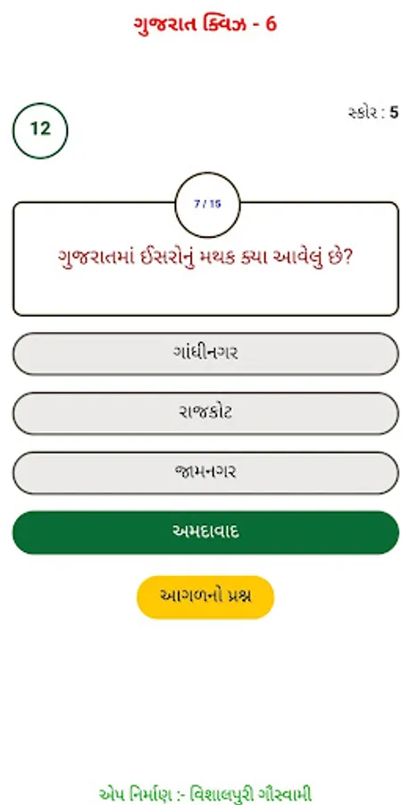 Gujarat Quiz App is Gujarati app for students. You can play quiz about Gujarat state using this app. There are 8 sections given here. In future, this app will update with more question about Gujarat.