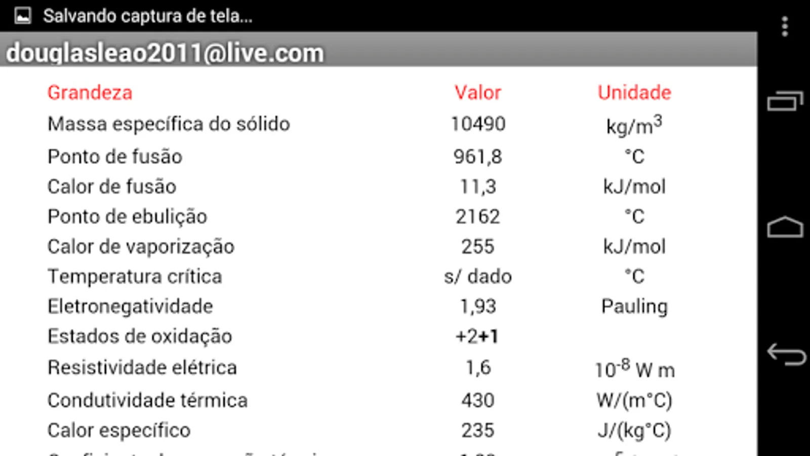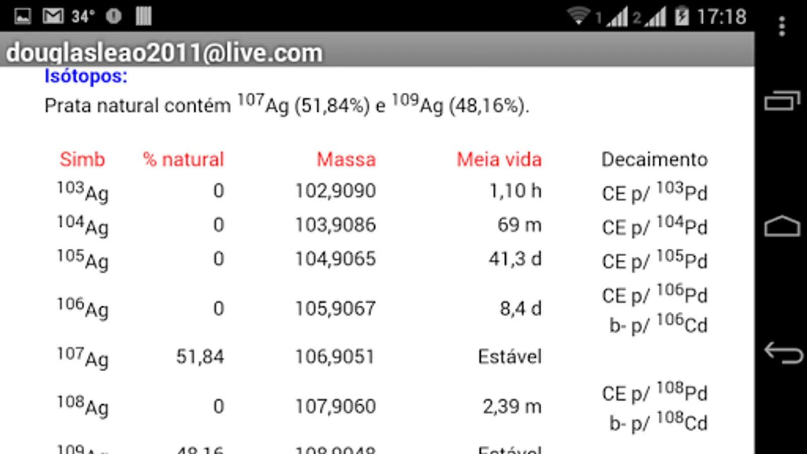 This application it's a very useful periodic table for you who wants to study on the chemical and physical properties of each chemical that is the periodic table of elements. 114 are descriptions of chemical elements. Are described availability, production, properties, compounds / reactions, applications, isotopes and decay, emission spectrum and absorção.Nos isotypes are shown the element symbol isotope% natural, mass isotope, half-life of the element and the decay. Properties are shown density, melting point, heat of fusion, boiling point, heat of vaporization, atomization of heat, critical temperature, electronegativity, oxidation states, electrical resistivity, thermal conductivity, specific heat, thermal expansion coefficient, modulus of elasticity crystal structure. Also shown is the element name in 11 languages.