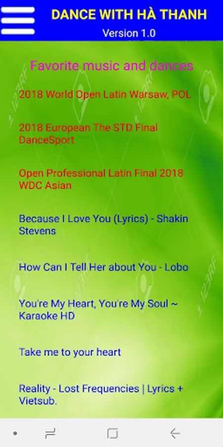 Dancing with Ha Thanh, Các bản nhạc khiêu vũ phổ biến dành cho các điệu nhảy RumBa, Cha Cha Cha, Bebop, Tango, Bachata, Pasodoble, Valse, Samba ...