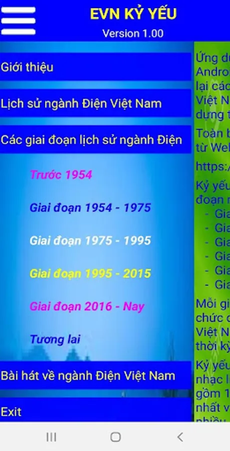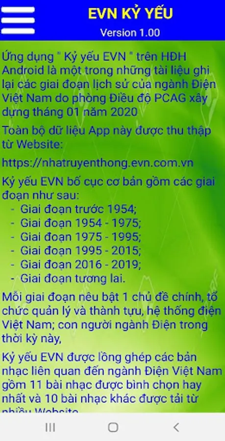 The application "EVN Proceedings" on Android OS is one of the documents recording the historical periods of Vietnam's electricity industry, built by PCAG Dispatch Office in January 2020.