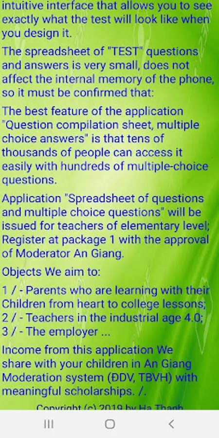 Application "Spreadsheet of questions and multiple choice answers" will be issued for teachers of elementary level; Register at package 1 with the approval of Moderator An Giang.