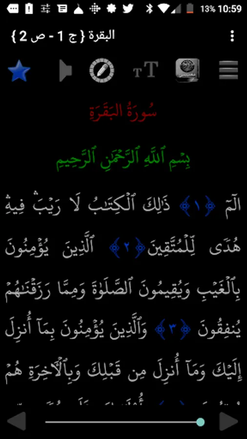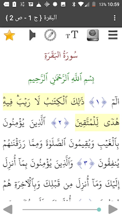 * Text Resizing of the Quran without tilting the phone to the landscape mode with retaining the size of the lines inside the width of the screen.