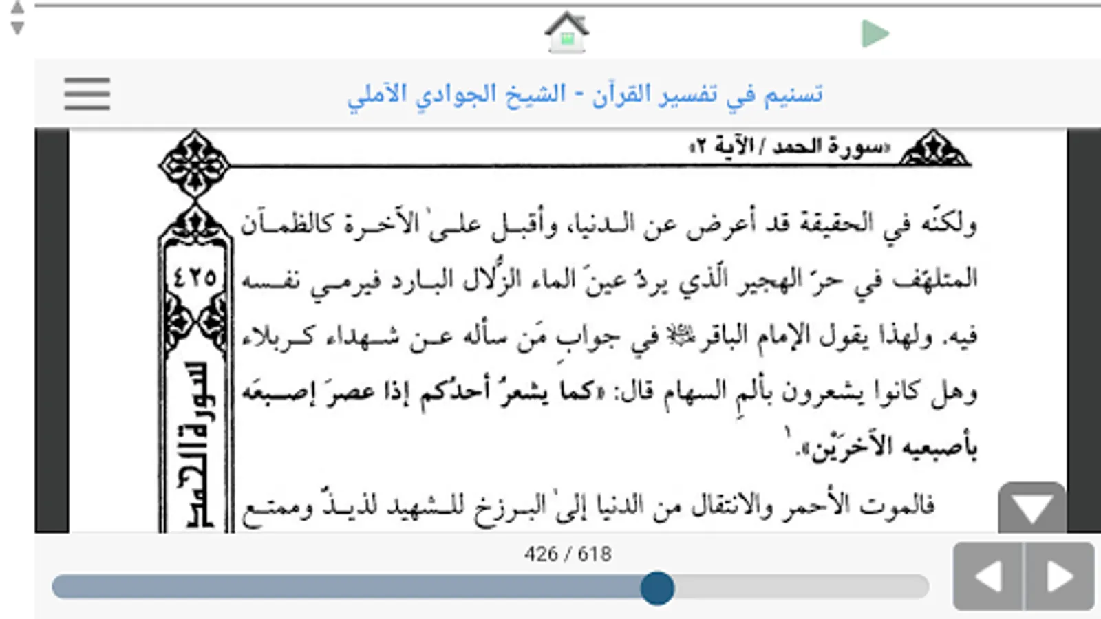 * التنقل عبر الصفحات دون الحاجه الى لمس آيات الكتاب الكريم.