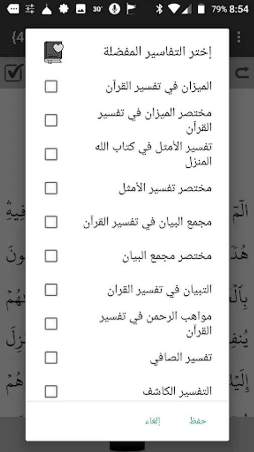 This program is providing a selected dictionary for the meaning of the strange words in the Quran in each page , and Arabic Tafsir books like 'Tafsir Al-Mueen Lilwaetheen wal-Muttaetheen' for and Sheikh Mohammed Huwaidi , Almizan Fi Tafsir Alquran , Taqreeb Alquran ila Alathhan , Magma' Albayan fi Tafsir Alquran and Tafsir Noor Althaqalayn.