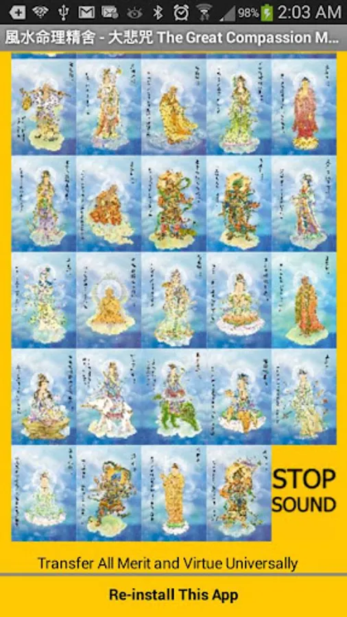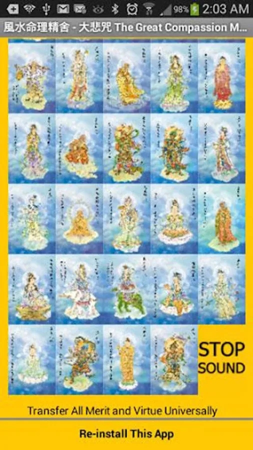 This is a free app for Smartphone users and is used to provide 84 Avalokite-svara images as well as background sound – Richmond Wong recited Great Compassion Mantra.