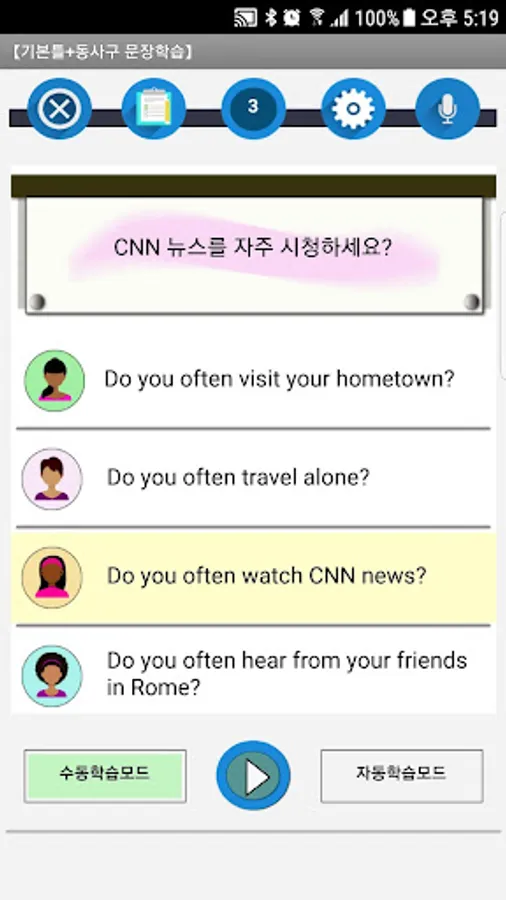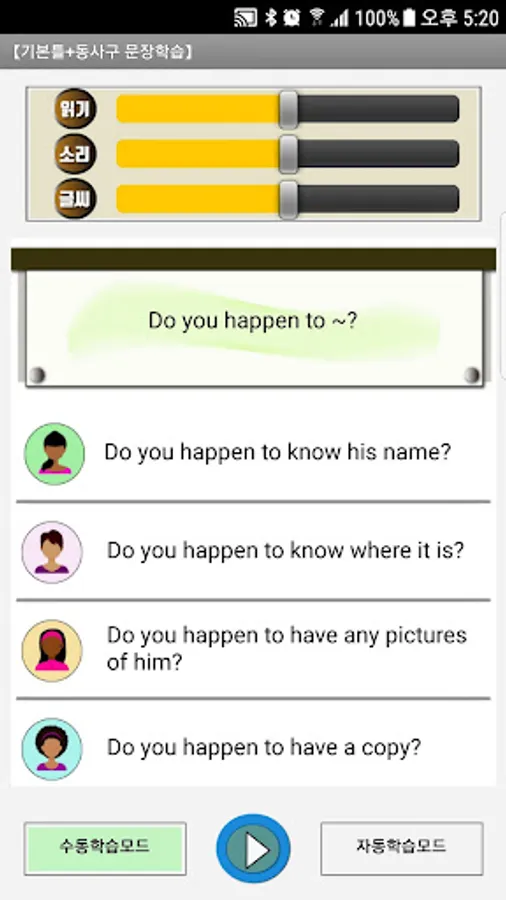 - You can listen to sentences in native pronunciation, and you can also practice speaking.