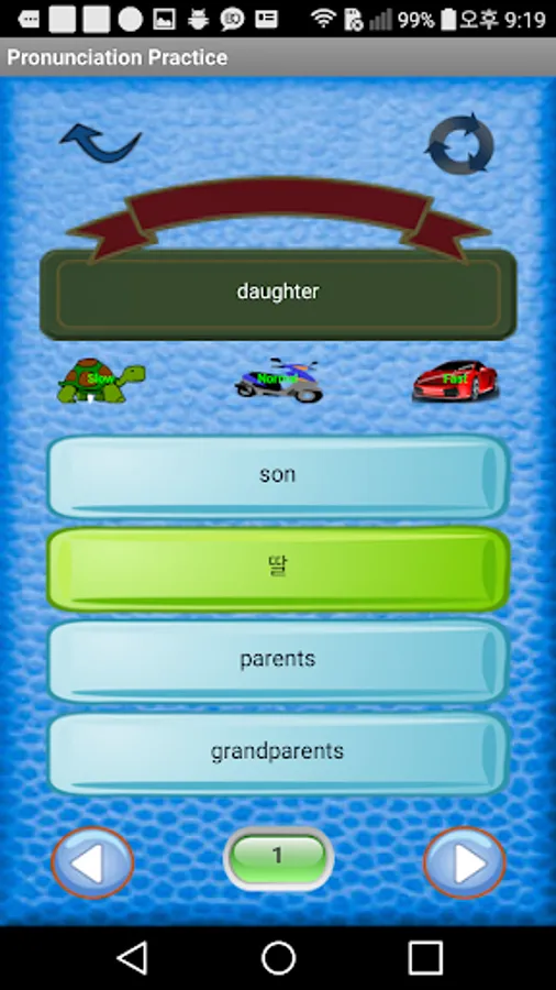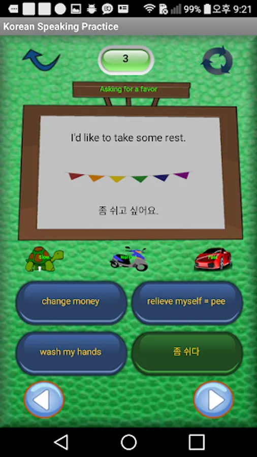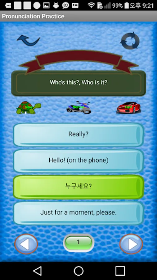 [In this app] : You learn Korean phrases and their pronunciations on English basis.