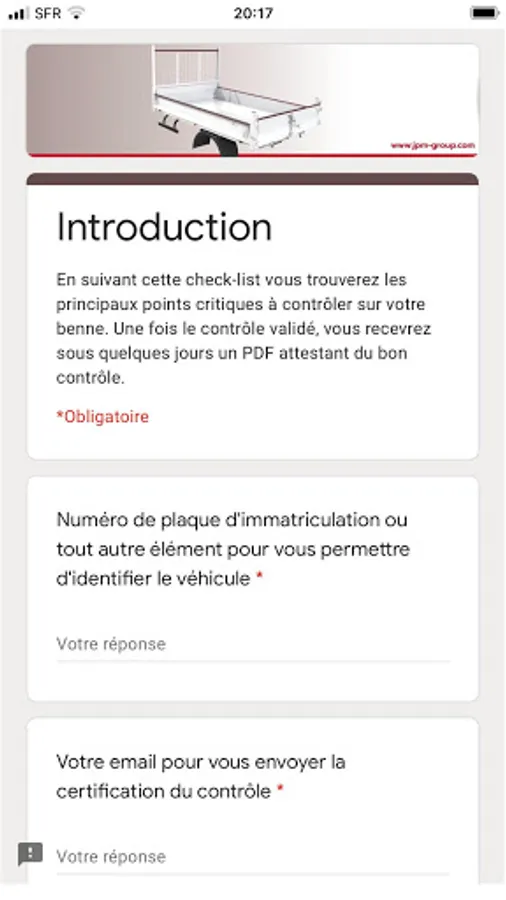 By following the JPM Control application you will find the main critical points to control on your tipper (any brand). Once the control has been validated, you will receive a PDF document confirming the correct control within a few days.