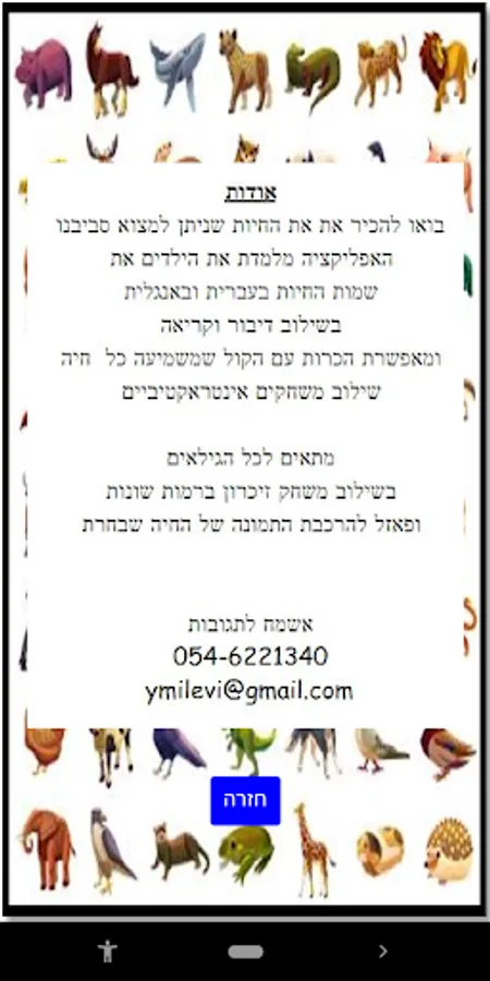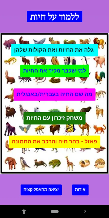 The children can learn the names of the animals in Hebrew and English in combination with speech and reading