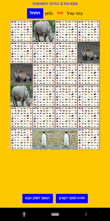 A memory game of different levels and a puzzle to assemble the image of the selected animal