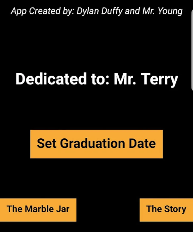 Based on the story that was circulated on the internet. One of my CSP students decided to create and app for Mr. Terry, his physics teacher. Working together we created an app that joined the story about Saturdays left and marbles in the jar and the weeks left until graduation.
