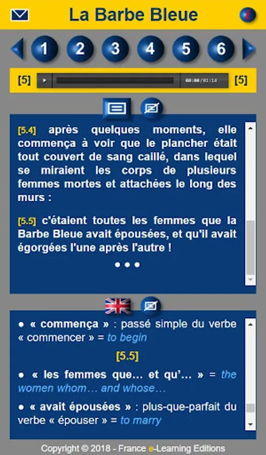● LISTEN & READ the French fairy tale: "LA BARBE BLEUE" (Blue Beard) by Charles Perrault.