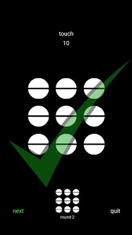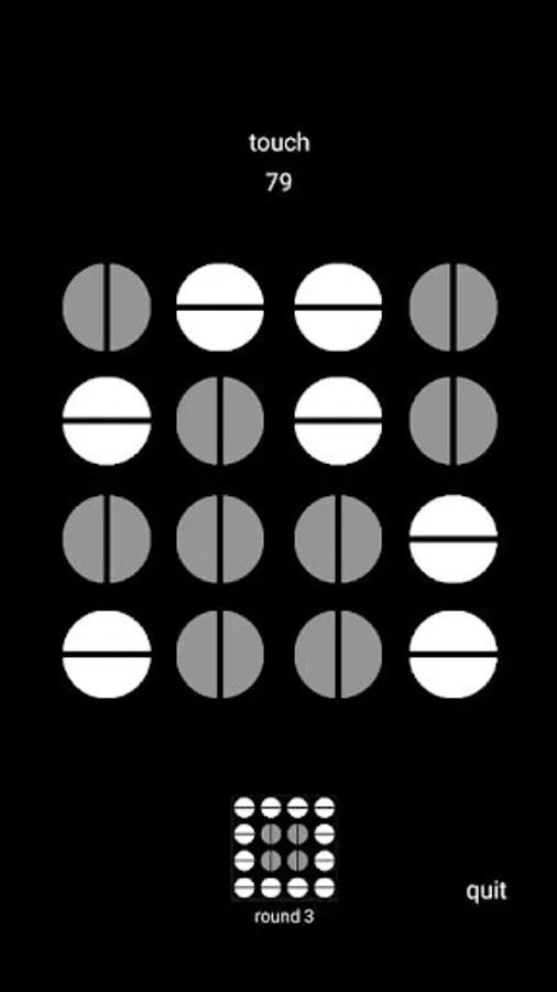 It is a three level puzzle with buttons. Level one it's easy. Level two it's medium but level three it's very hard. The idea is to make the central puzzle look like the pattern on the bottom of the screen.