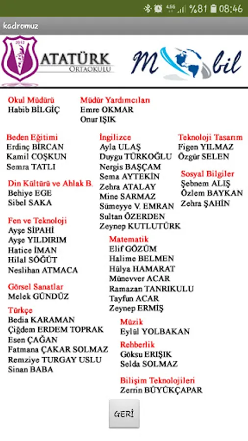 Okulumuz haberleri, duyuruları, eğitim kadromuz, sınav tarihleri, ders programı, ve kurumumuza ait tüm resmi sosyal medya hesapları ile ilgili linkler konularak hazırlanmıştır. Öğrencimiz Ege Türk'le birlikte hazırlanmıştır.