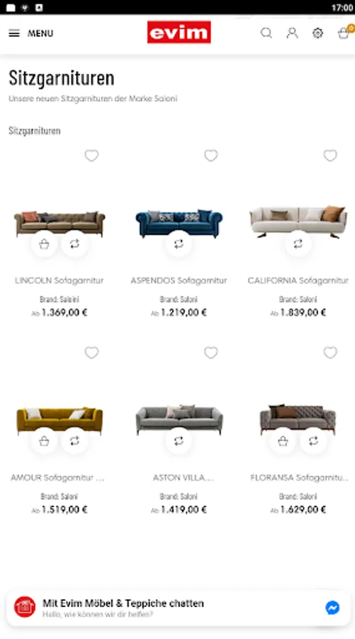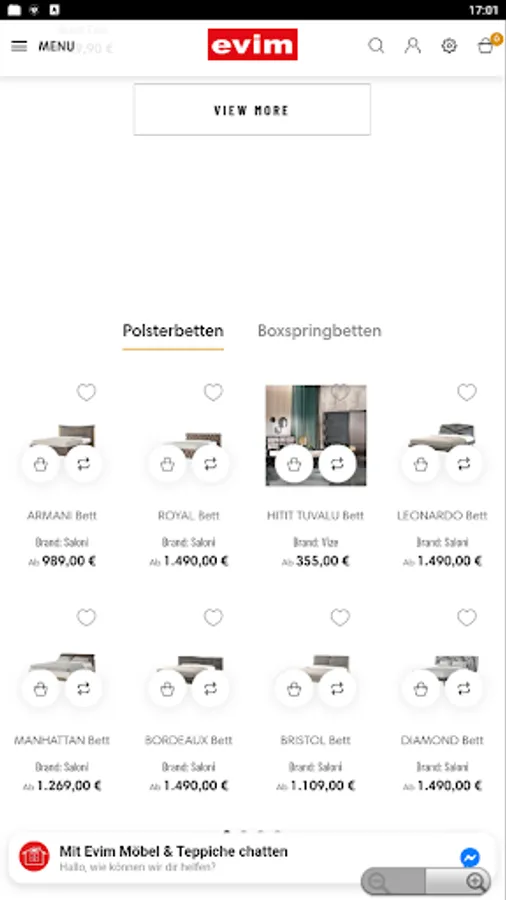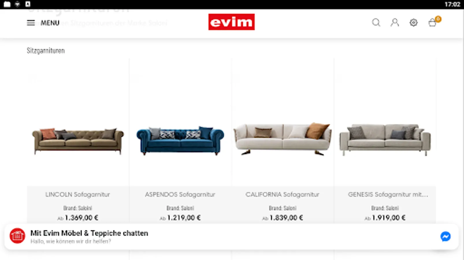 ★ All furniture in one place: Find sofas, corner sofas, coffee tables, wall units, wardrobes, box spring beds and much more in the Evim app