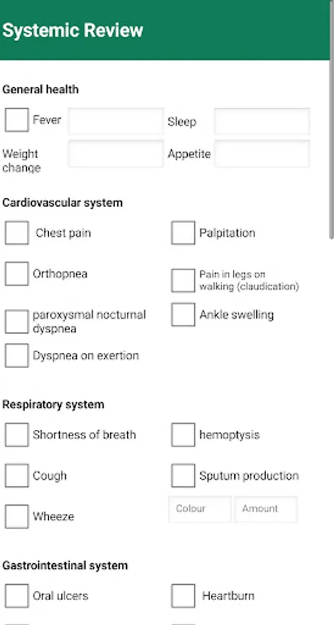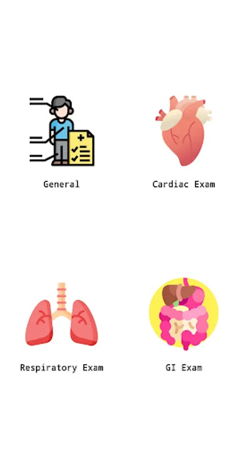 2- Physical Exam: It reminds you of the physical examination steps of general examination, cardiac exam, respiratory exam and GI exam ... we will add more systems in the future.