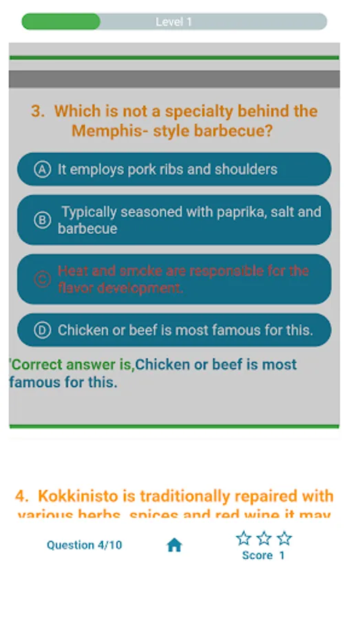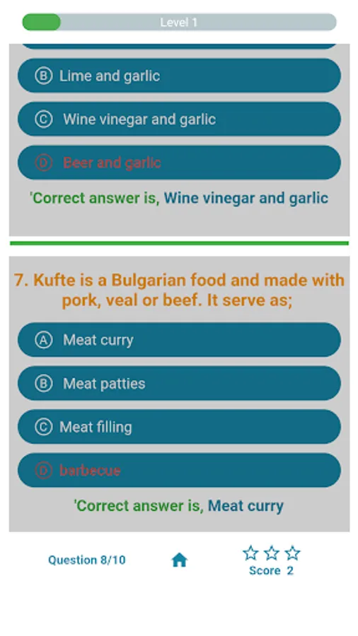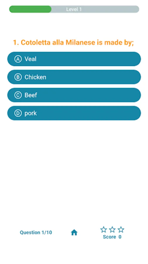- Multiple-choice quizzes on various cuisines, including Italian, French, Chinese, and more.