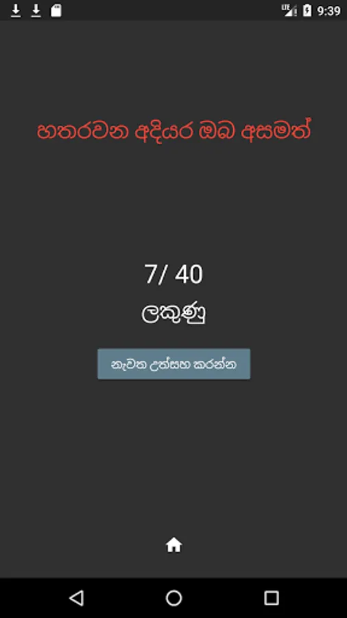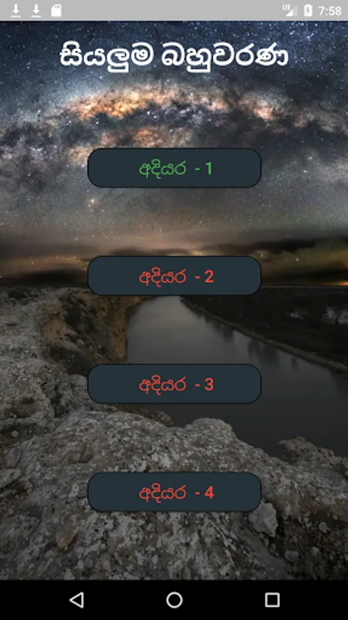 - ප්රශ්න 40 බැගින් සමන්විත අදියර හතරක් ලෙස අඩංගු කර ඇත.