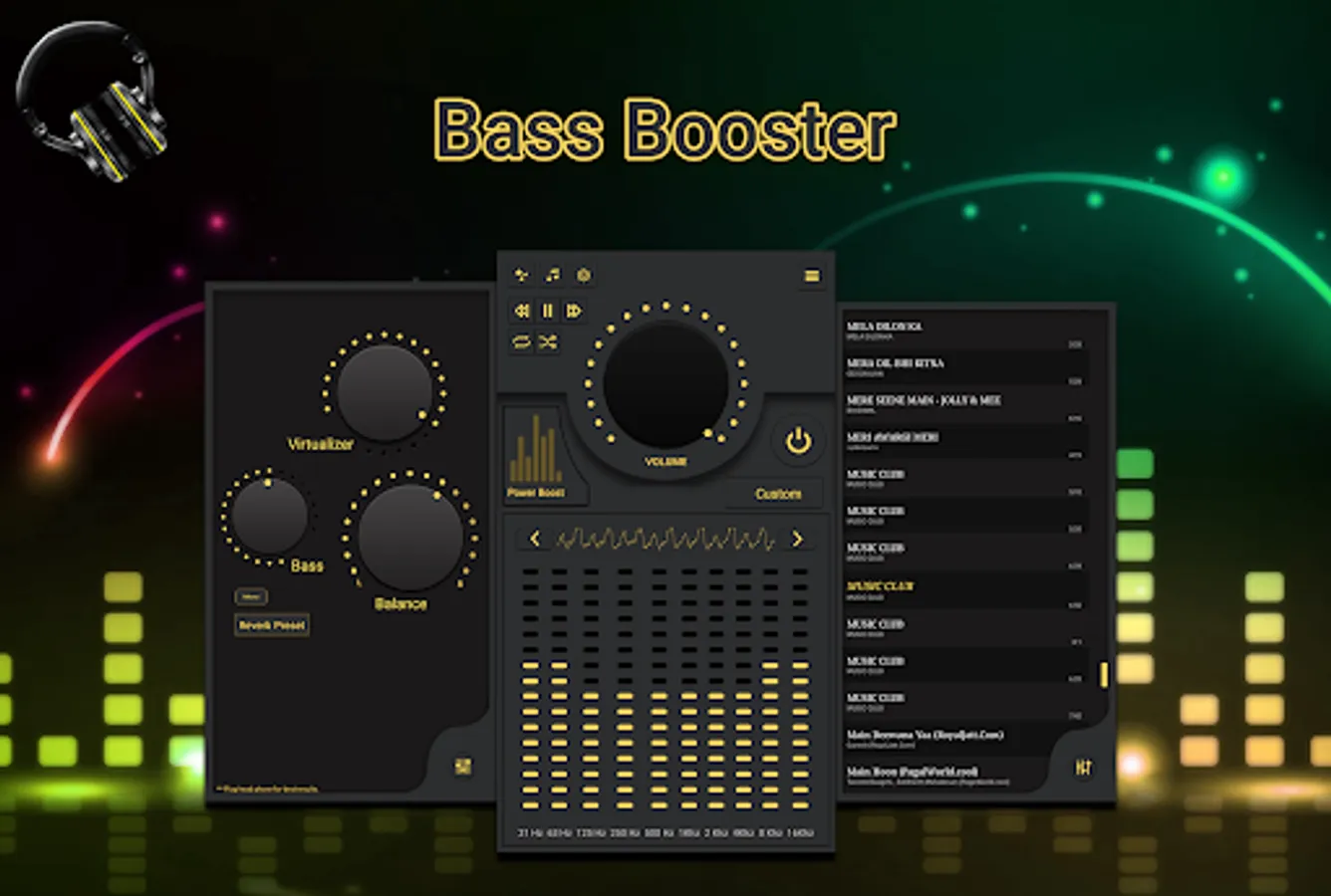 Music Player with powerful music equalizer, bass booster and great sound virtualizer, Quick search all music files, free to get this perfect audio player and media player.
