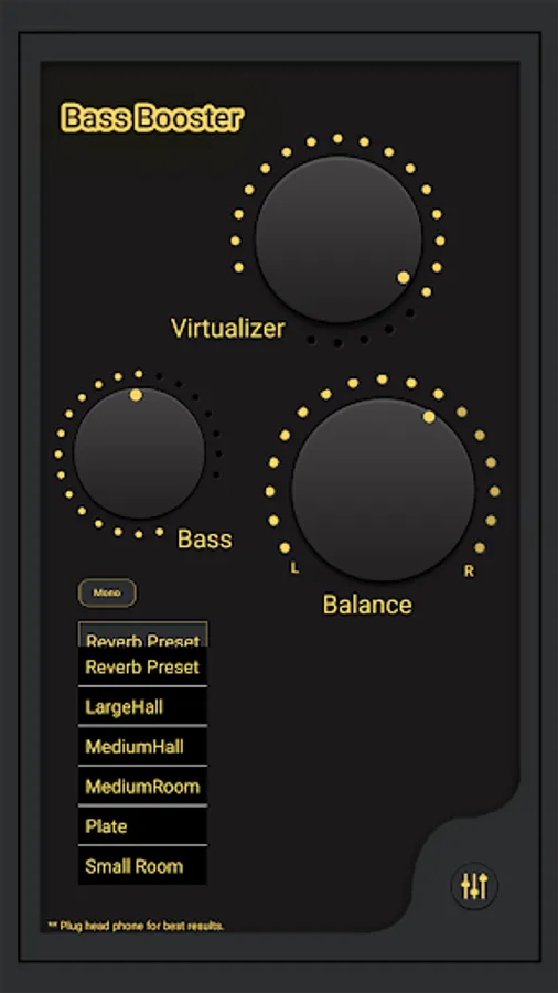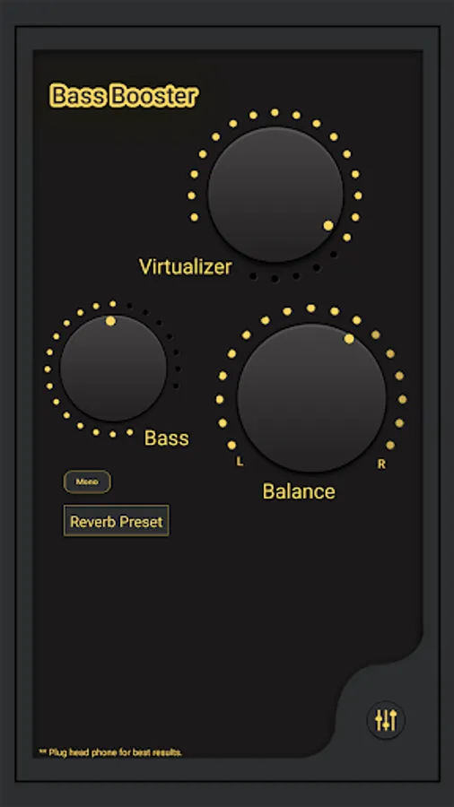 Bass Booster will amplify your bass at a maximum and provide you with a better quality sound wherever you are! Just turn on your music player and open Bass Booster.