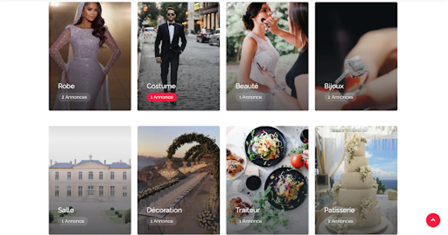 Dresses, costumes, beauty, jewelry, reception hall, decoration, caterer, pastry shop, organizer, florist, DJ, entertainer, photographer, cameraman, car rental, ...