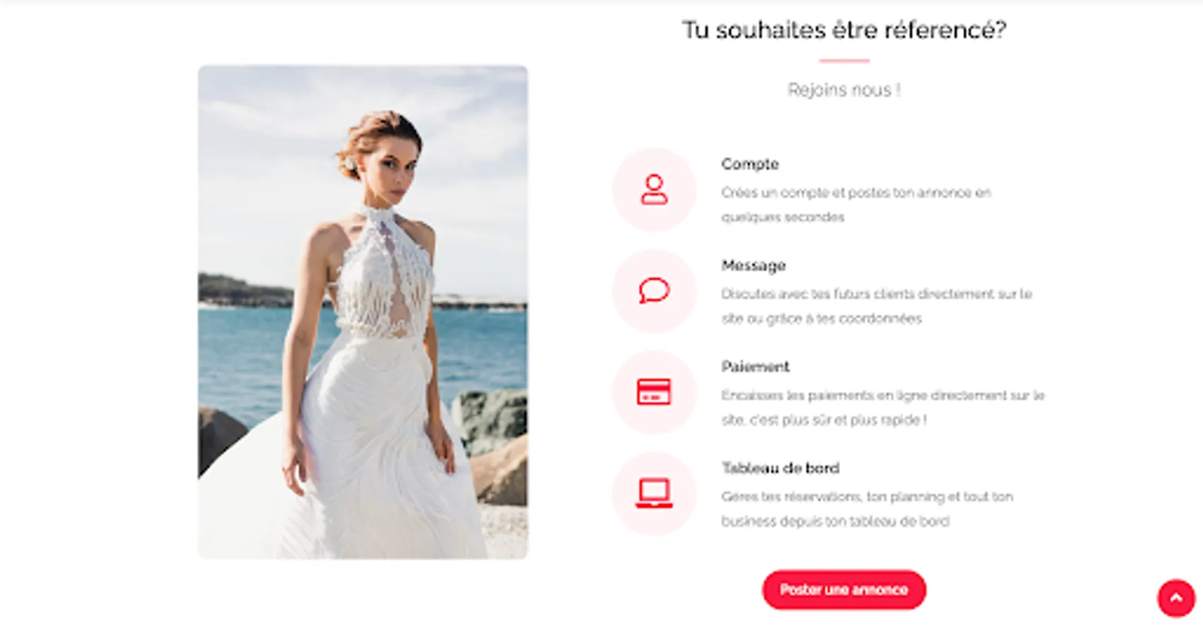 A service provider area to manage your ads, consult reservations, manage your schedule, consult statistics (number of views, etc.) and manage your portfolio.